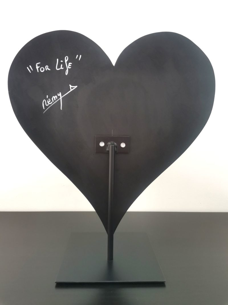L’œuvre est fixé sur un socle en métal. petits caoutchoucs sous le socle pour ne pas rayer l’endroit où l’on souhaite la poser.